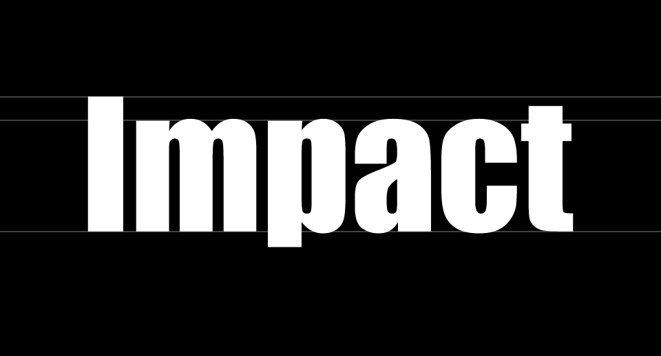その名の通り、「インパクト=衝撃」を与えることを目的として設計されたフォントで、極太のストローク、狭い字幅、大きなxハイトなど、あらゆる要素が“目立つため”に最適化されています。