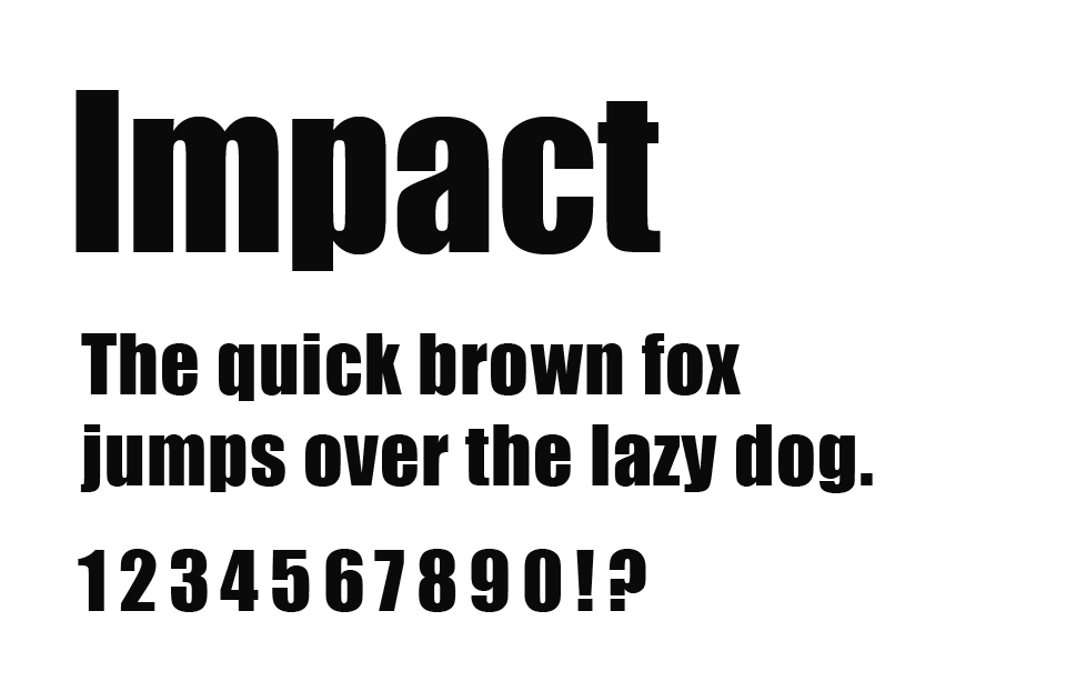 Impactは1965年、英国のタイポグラファー ジェフリー・リー(Geoffrey Lee) によってデザインされたサンセリフ体フォントです。
